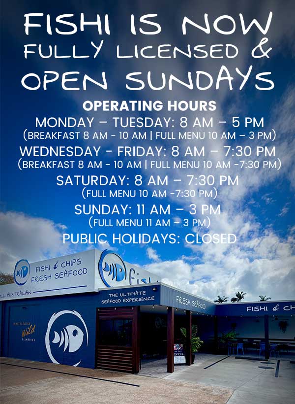 Visited Fishi with my family on holiday at Airlie beach and their customer service was absolutely amazing. Fresh oysters, fresh prawns, fresh seafood all round. They were kind enough to even give me something a little extra for my birthday … More to go alongside the sturgeon caviar I bought.